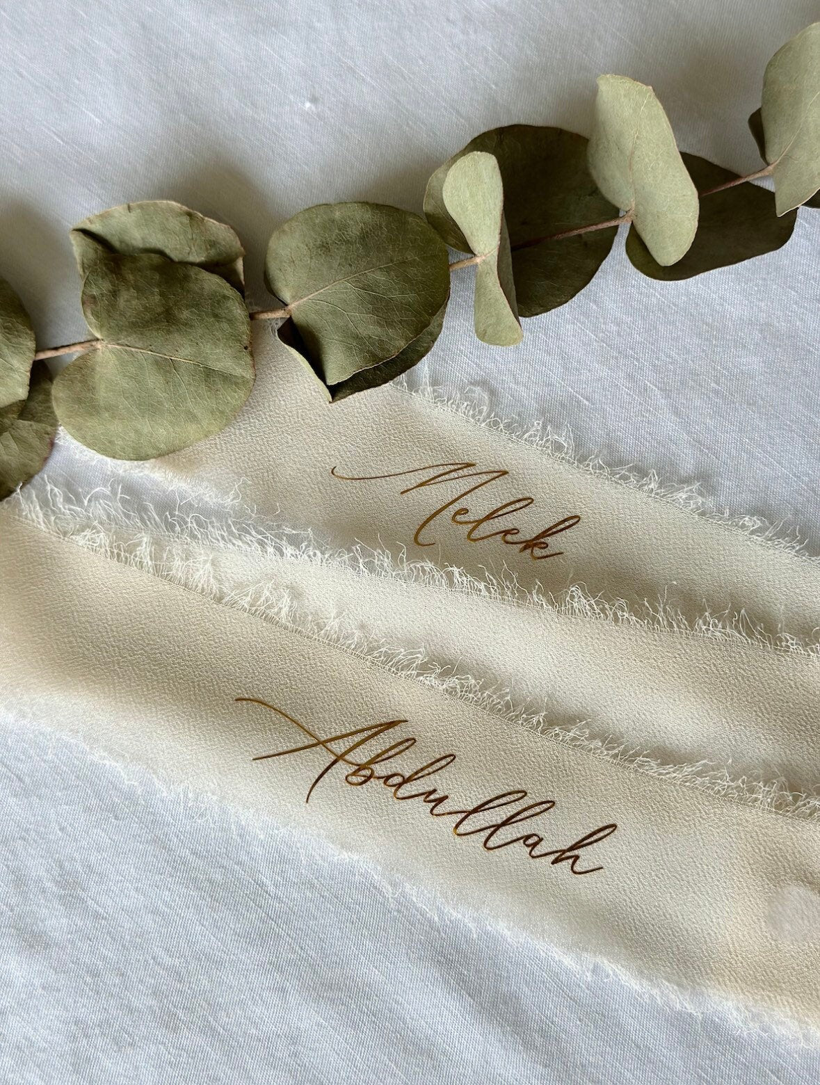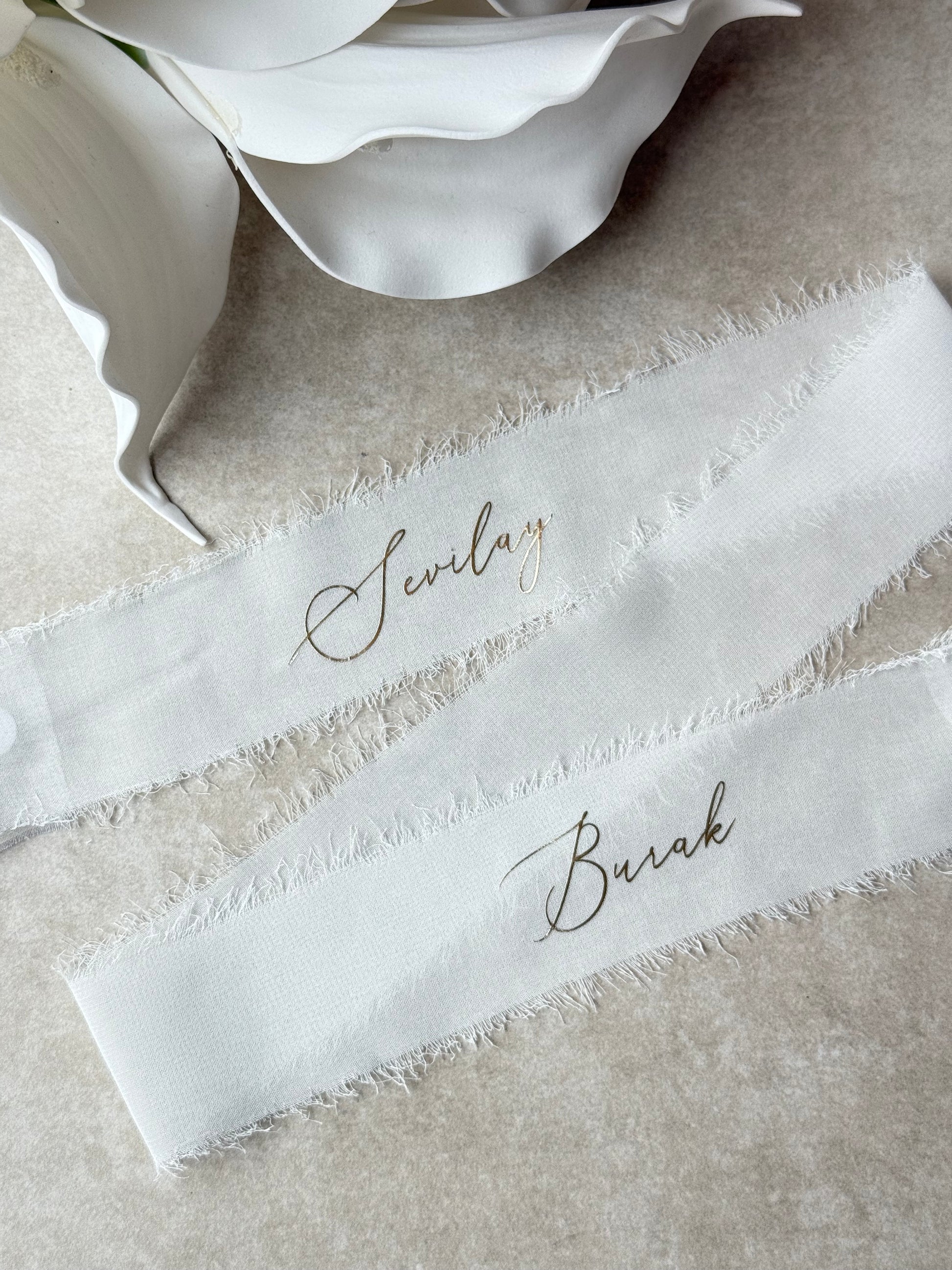 Dieses personalisierte Ringband hat einen anderen Stil als die anderen. Man kann bei der Schriftfarbe zwischen Gold und Silber entscheiden. Das Band ist 60 cm lang 🤍