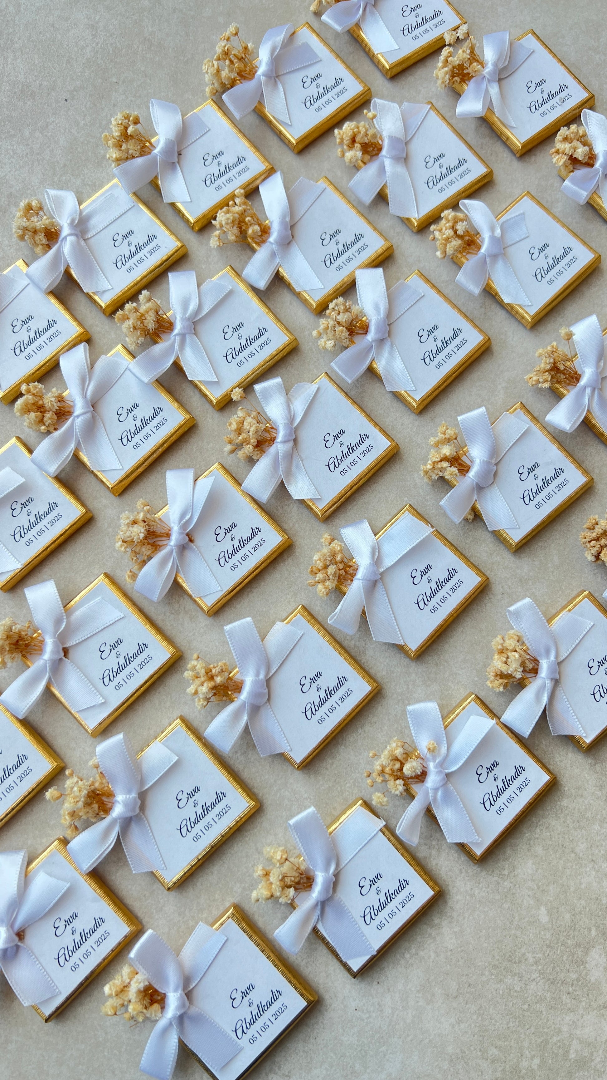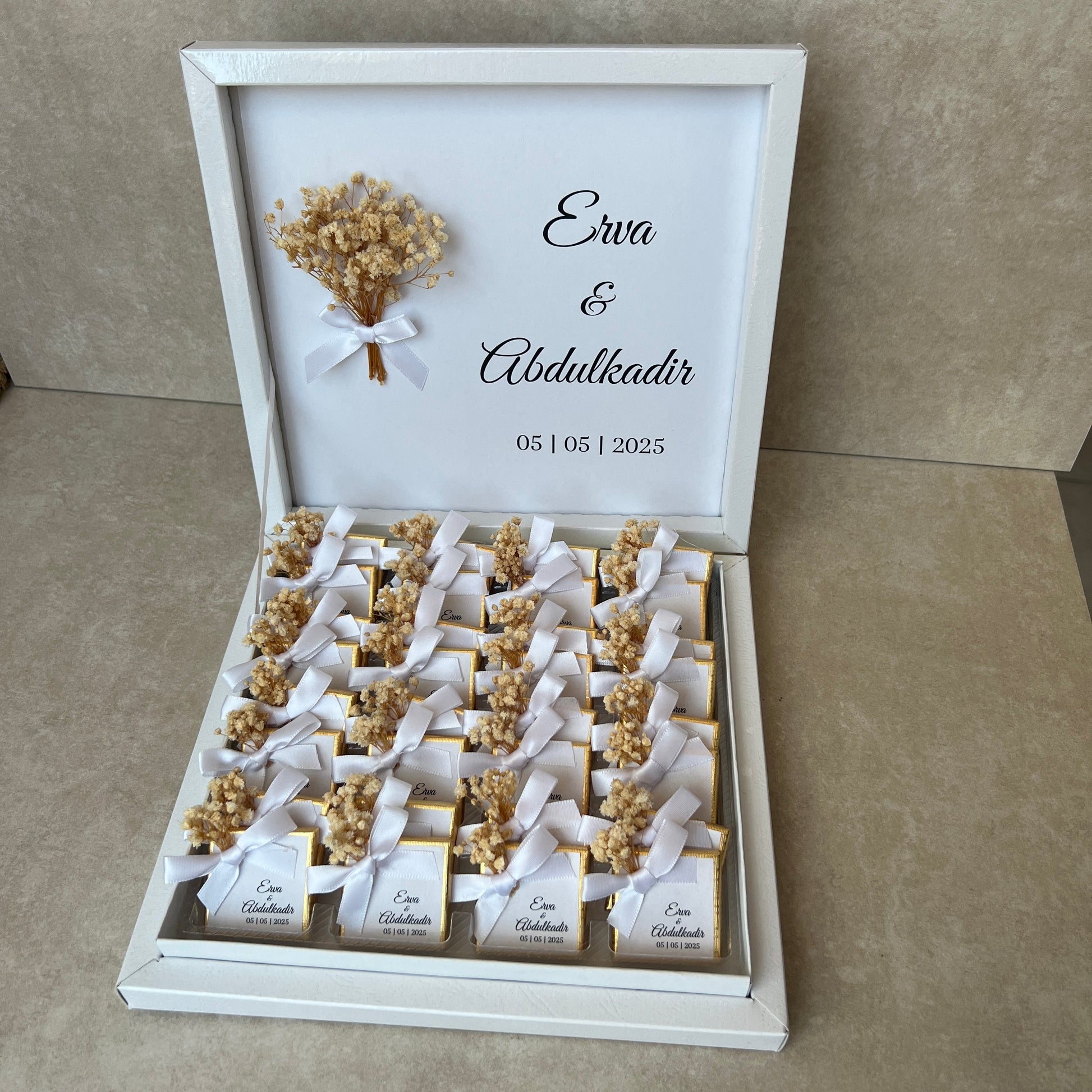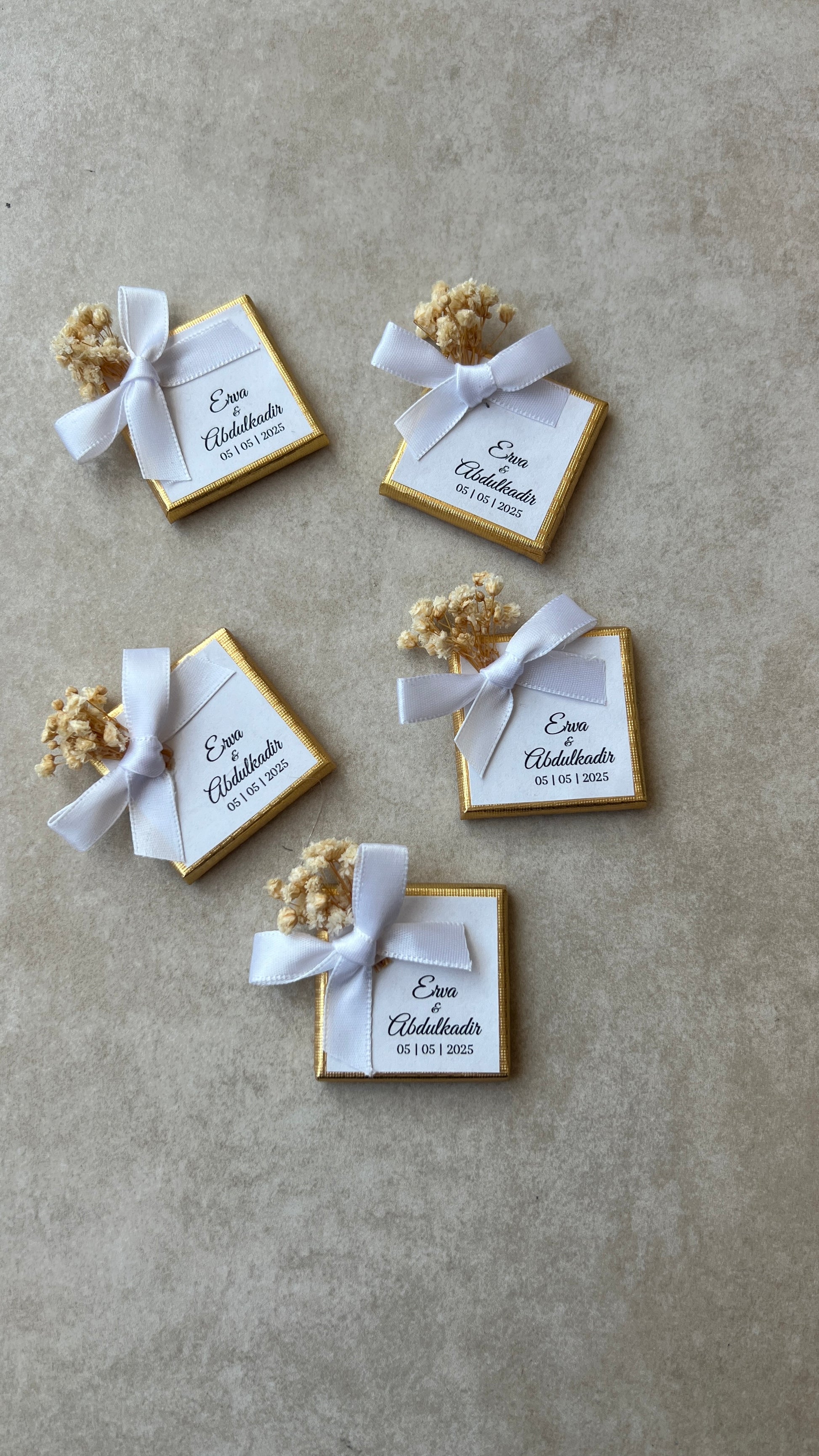 Sowohl die Innenkappe wird beschriftet, als auch die einzelnen Schokoladentafeln 🫶🏼 Anschließend wird die Box mit einem Bändchen und Trockenblumen verziert 🫶🏼