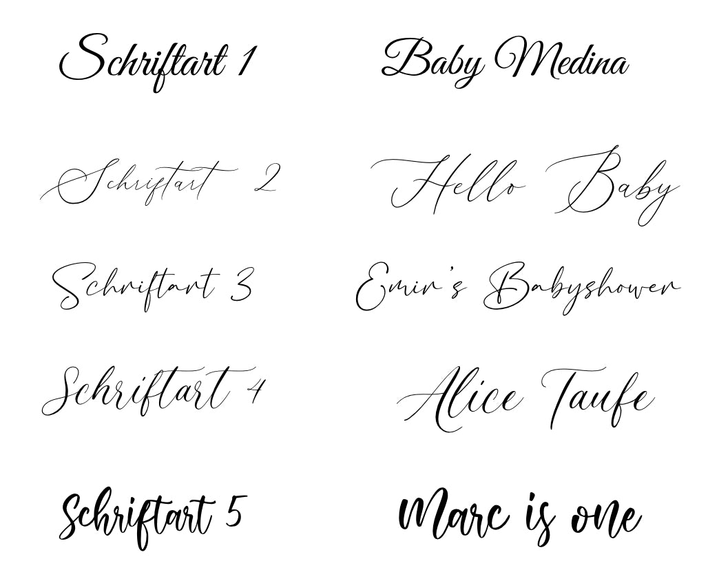 Wenn bei der Bestellung keine Schriftart angegeben wird suchen wir uns selber eine aus. Dabei ist eine Reklamation ausgeschlossen 🤍